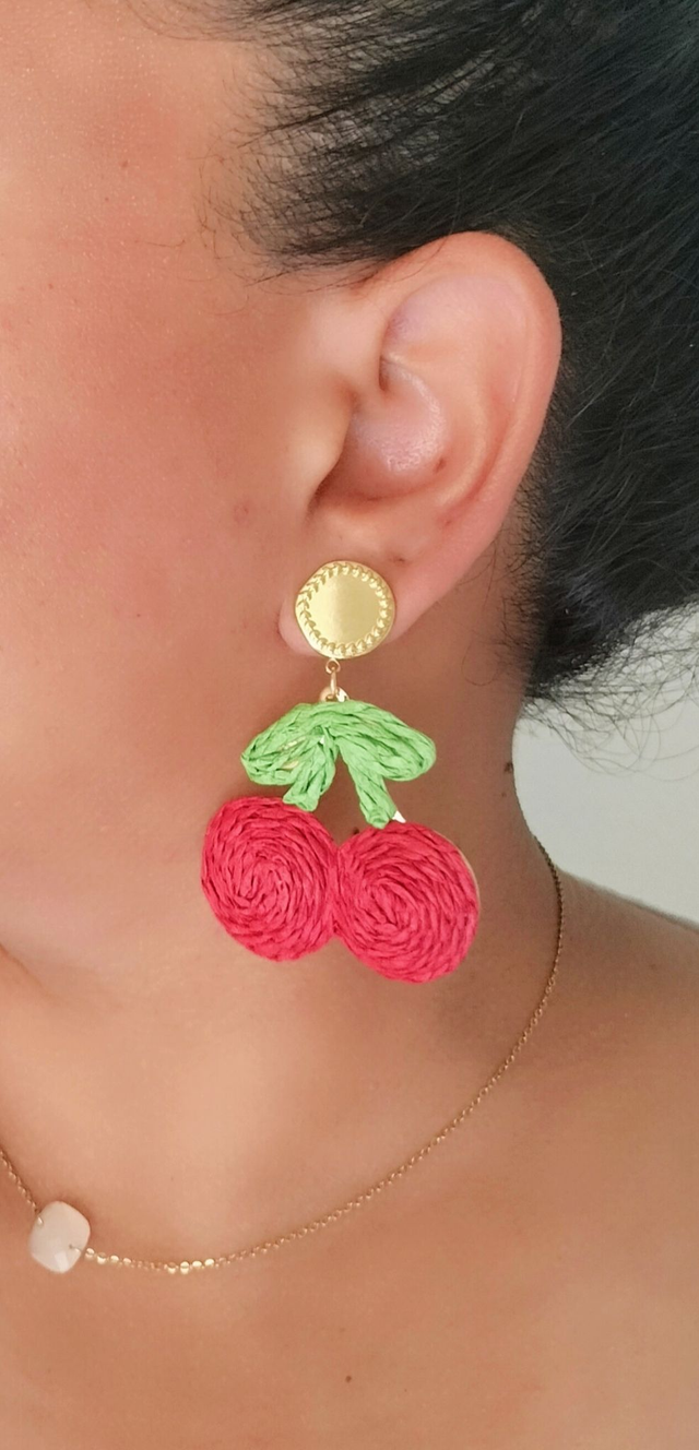 Apportez une touche fruitée et joyeuse à vos tenues avec ces petites cerises légères et espiègles. Idéales pour un look estival ou bohème, elles illuminent votre style avec délicatesse et originalité.