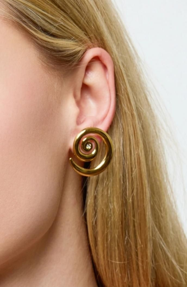 Boucles d’oreilles en spirale, avec un petit strass au centre, pour une touche élégante et scintillante.