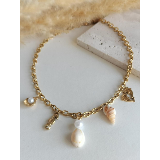 Matériaux du bijou: Chaine et charmes en acier inoxydable & coquillage en résine