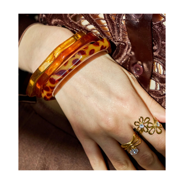 Lot de 3 Bracelets Résine Léopard – Formes Géométriques Modernes.